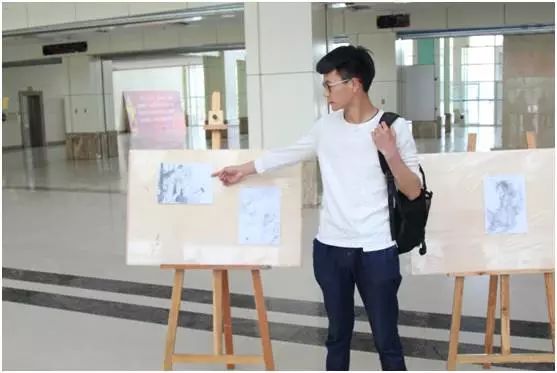 浮世手绘社首先在主教阳光大厅进行了画品展。把他们自己的作品一字排开,供人欣赏。他们的画风新颖,各种人物角色惟妙惟肖,深深的吸引着观众的目光,获得了观众的赞赏!