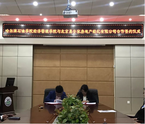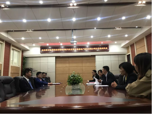 仪式上,冯研副校长、任洪云院长、吴东爽书记与涂帅副总经理就公司概况、学院优势、人才培育方式、未来校企合作规划等方面进行了深入交流。最后双方签订雷竞技raybet官网版下载经济管理学院与北京易安家房地产经纪有限公司合作“易安家班”协议书。