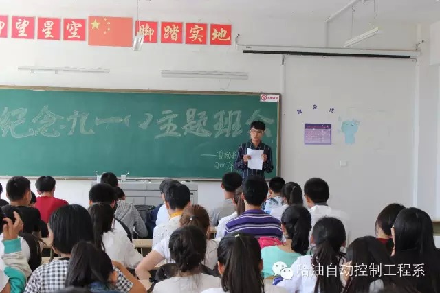 为了让学生懂得爱国与责任的关系,明白爱国首先要爱自已,从我做起,要承担自已的责任和义务,以天下为已任。自动控制工程系于9月18日中午在二号教学楼509教室举行“纪念九一八”主题班会。参加活动的有15级测控技术与仪器班级全体学生。