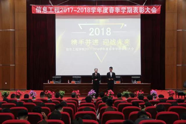 2018年6月13日晚五点30分,雷竞技raybet官网版下载信息工程学院在图书馆报告厅隆重举行信息工程学院2017-2018学年春季学期表彰大会。出席本次大会的嘉宾有雷竞技raybet官网版下载教务长信息工程学院院长胡文教授、党总支书记毛雷老师,院办助理孙毅老师,团总支书记张宏鹏老师,辅导员黄家政老师,学院全体学生参加了本次大会。