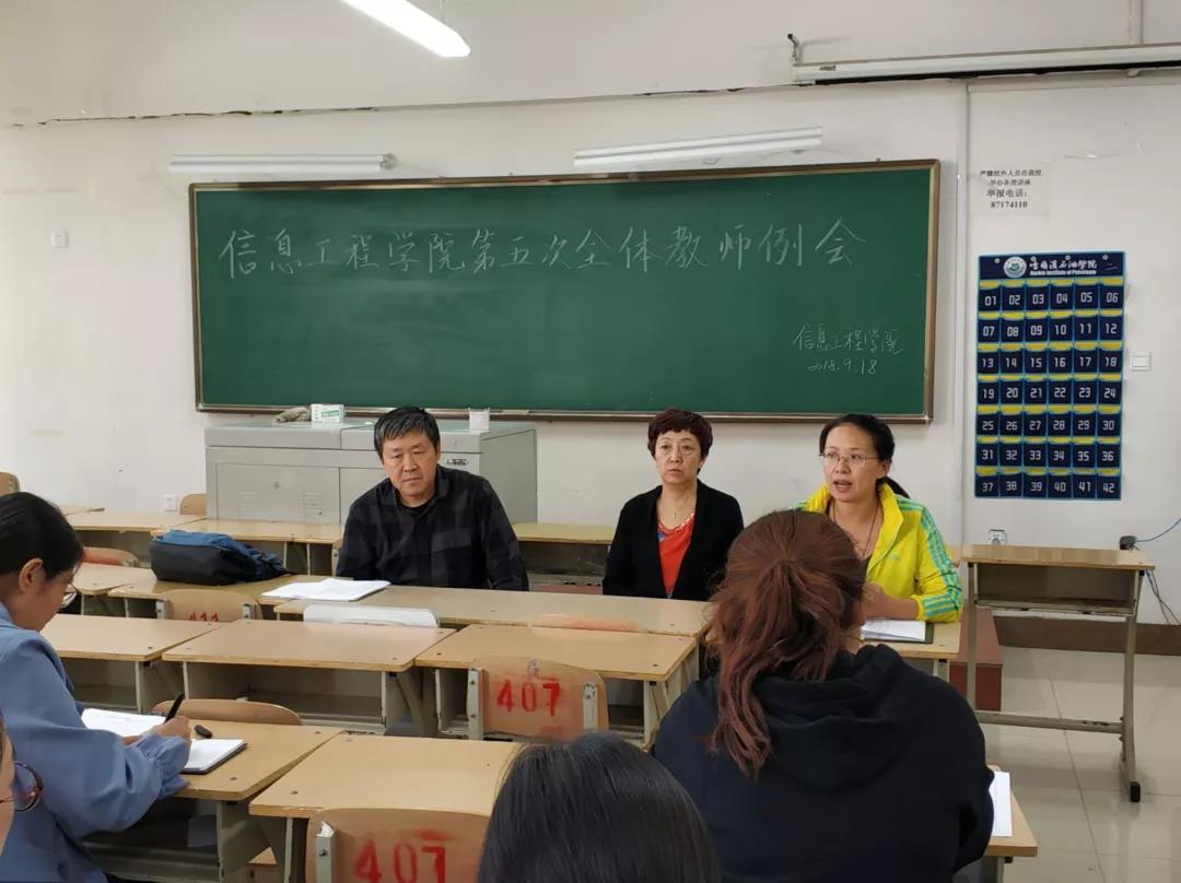 为了更加明确了新学期的工作目标及方向,更是为了教师们能营造一个相互交流学习的氛围。2018年9月18日,雷竞技raybet官网版下载信息工程学院于二教407召开新学期第五次工作例会。会议由副院长朱佳梅主持,学院班子成员及全体教工参加会议。