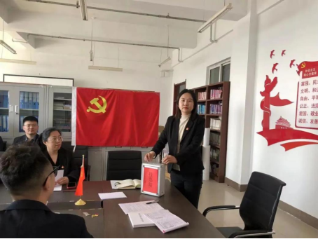 会议最后一项,民主评议党员。支部书记杨艳春老师说明了评定等次和评定人数等要求,大家本着客观公正、实事求是的态度进行投票评议,填好之后由计票人收齐选票进行计票汇总。
