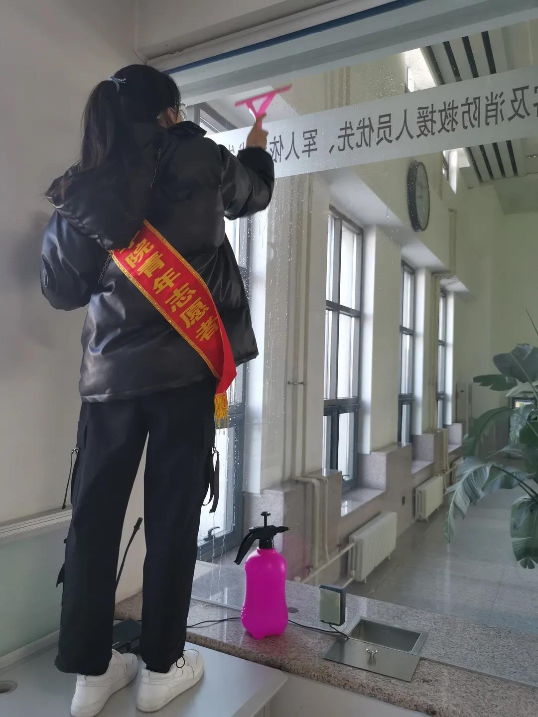 志愿者们在哈北站售票班组负责人关芷及相关工作人员的带领下,对公共区域和售票室内外的卫生进行了彻底的清理。还有部分志愿者参与到了售票秩序维护之中,我院志愿者们在常态化疫情防控期间仍不忘坚持引导旅客注意疫情防护的宣传等工作,我院每名志愿者奉献自己的微薄之力,做好份内的志愿工作,意在为出行的乘客们营造一个整洁、舒适、安全的候车环境。坚持“为群众办实事”的信念,展示我院志愿队伍的良好形象,也将“奉献、友爱、互助、进步”的志愿服务精神充分发扬。