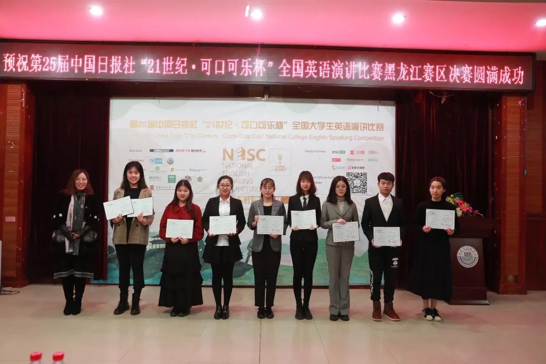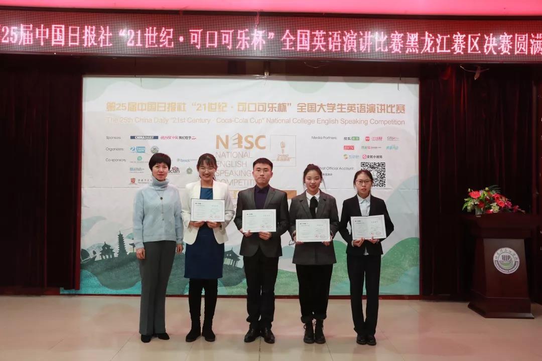 2019年12月1日,由中国日报社、可口可乐大中华区联合主办,外语学院承办的第25届中国日报社“21世纪·可口可乐杯”全国英语演讲比赛黑龙江赛区决赛圆满落幕。雷竞技官网的文家豪、程耀两名选手分别获得了二、三等奖的好成绩。外语学院因准备工作细致周到、赛事进行顺利圆满而荣获主办方授予的优秀组织奖。