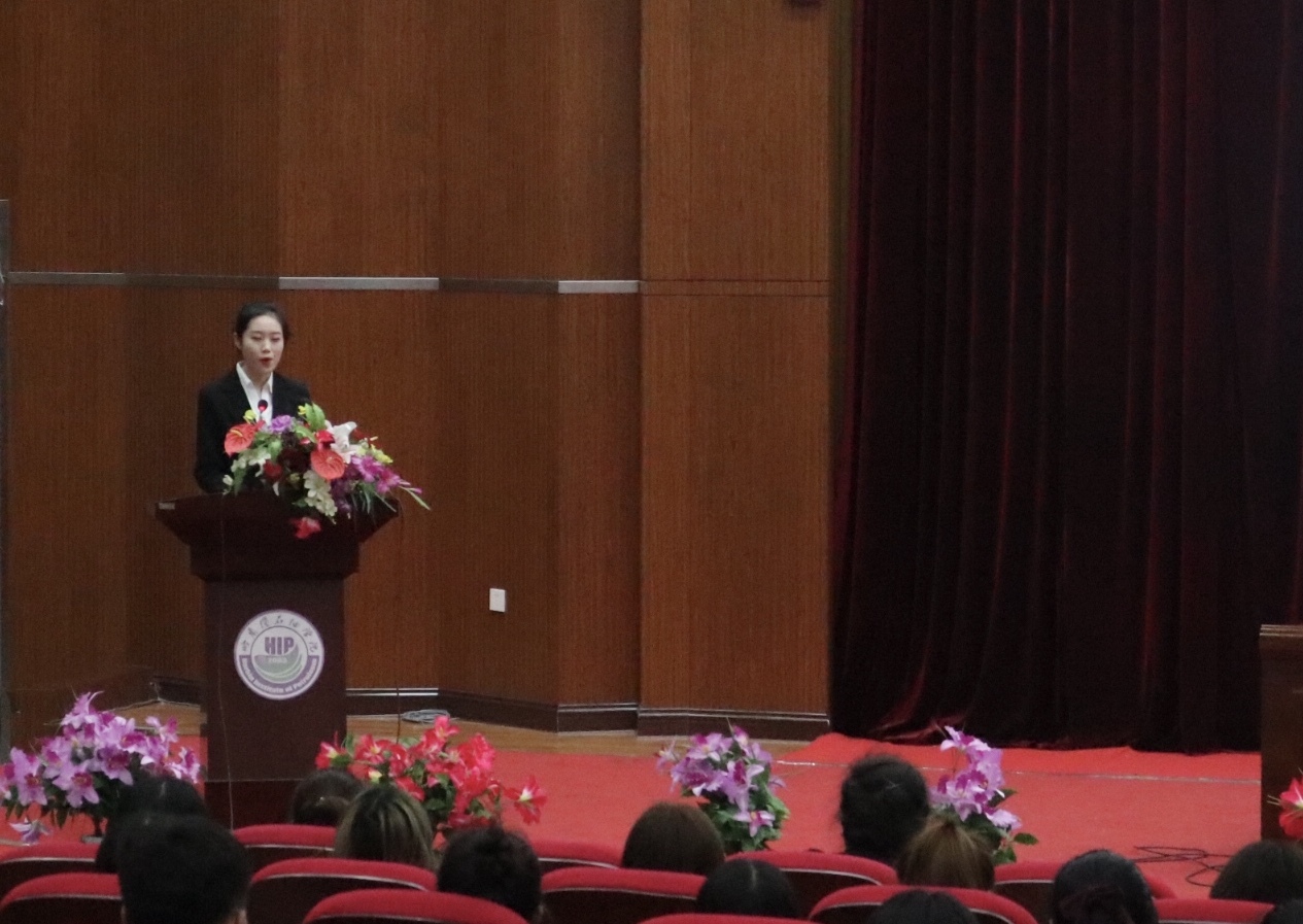 会议伊始,高丽娜副院长向师生们介绍了2019北京世园会实习项目,2019年中国北京世界园艺博览会是经国际园艺生产者协会批准,由中国政府主办、北京市承办的最高级别的世界园艺博览会。雷竞技官网的志愿服务项目于2018年11月份启动,从2019年3月到7月间,外语学院2016、2017级英语专业74名学生在世园会承担了志愿者的工作,他们秉承志愿服务和追求卓越的精神,在工作中无私奉献、认真负责,为世园会的圆满完成做出了突出的贡献。我院志愿者因为服务质量优良、工作成绩突出得到了世园会的认可,世园会向雷竞技官网的志愿者们颁发了优秀志愿者证书。