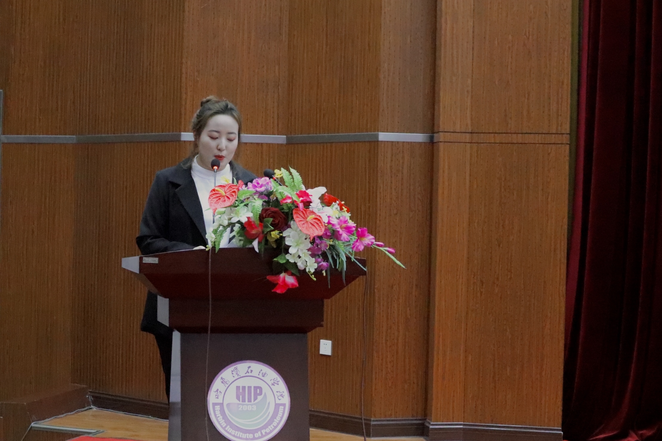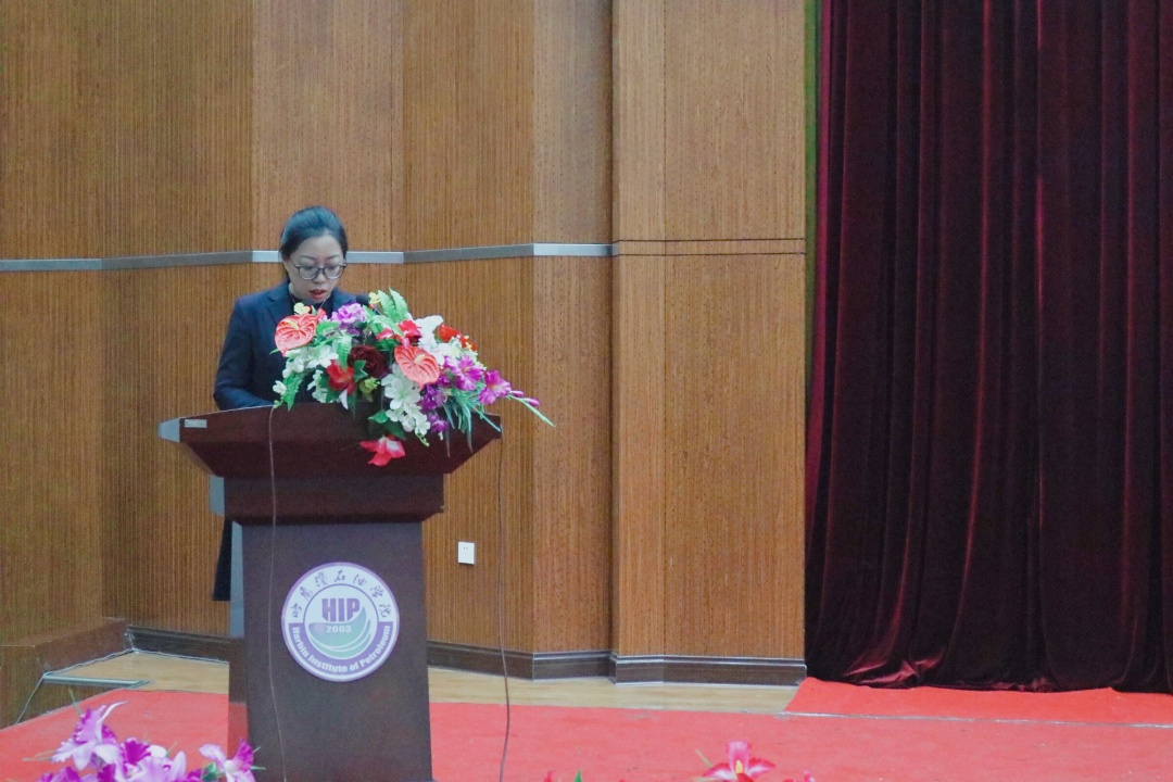 外语学院2019北京世界园艺博览会实习总结暨表彰大会于12月13日下午在图书馆报告厅举行。外语学院党总支书记兼院长王莉娅教授、党总支副书记孙晓萍、学院办公室主任赵连琦、教学秘书纪凤君、全体实习师生2017,2018,2019级全体同学参加会议,会议由副院长高丽娜主持。