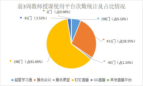 表1-3 前3周教师授课使用平台次数统计及占比情况