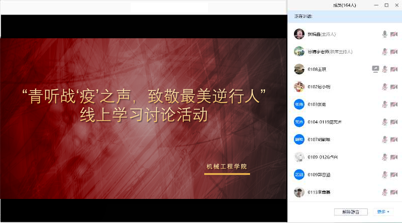 为深入学习贯彻习近平总书记勉励北京大学援鄂医疗队全体“90后”党员回信精神,雷竞技raybet官网版下载号召全校广大团员青年向战疫一线的青年榜样看齐,主动担起历史使命,从而引导学生认识时代英雄,让学生汲取成长养分和奋斗力量、传承民族精神,机械工程学院学生在聆听了王东博,孟凡莹,黄东来,殷乐四位英雄的抗疫事迹后,参加了我院开展的“青听战‘疫’之声,致敬最美逆行人”线上活动。