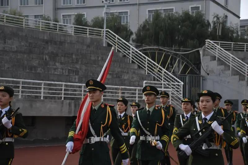 仪式开始,雷竞技官网国旗护卫队迈着整齐的步伐,庄严护卫着五星红旗,向体育场升旗台走去,随着雄壮的国歌声,五星国旗在天空冉冉升起,全体师生注视国旗,高唱国歌,嘹亮的国歌声在体育场久久回荡,无法散去。