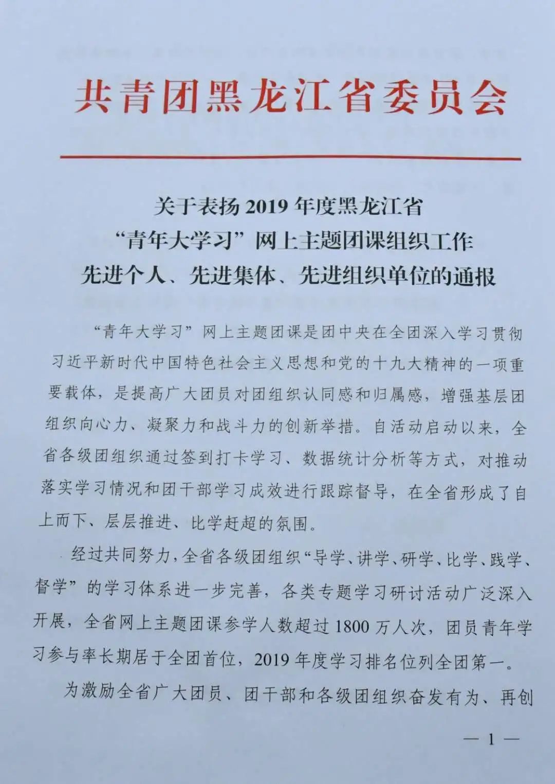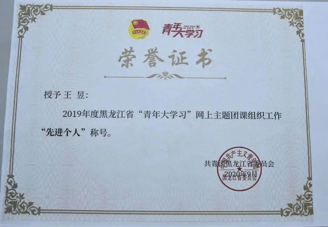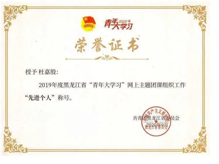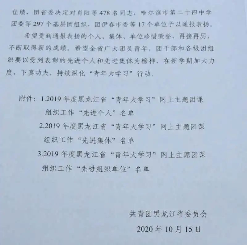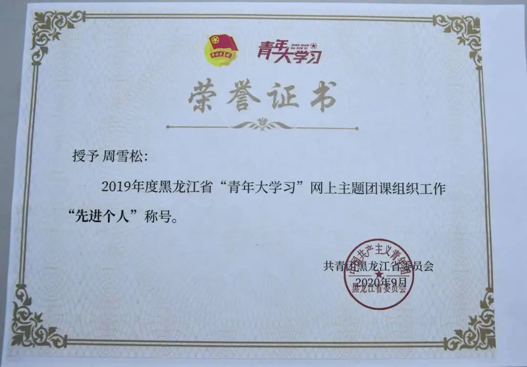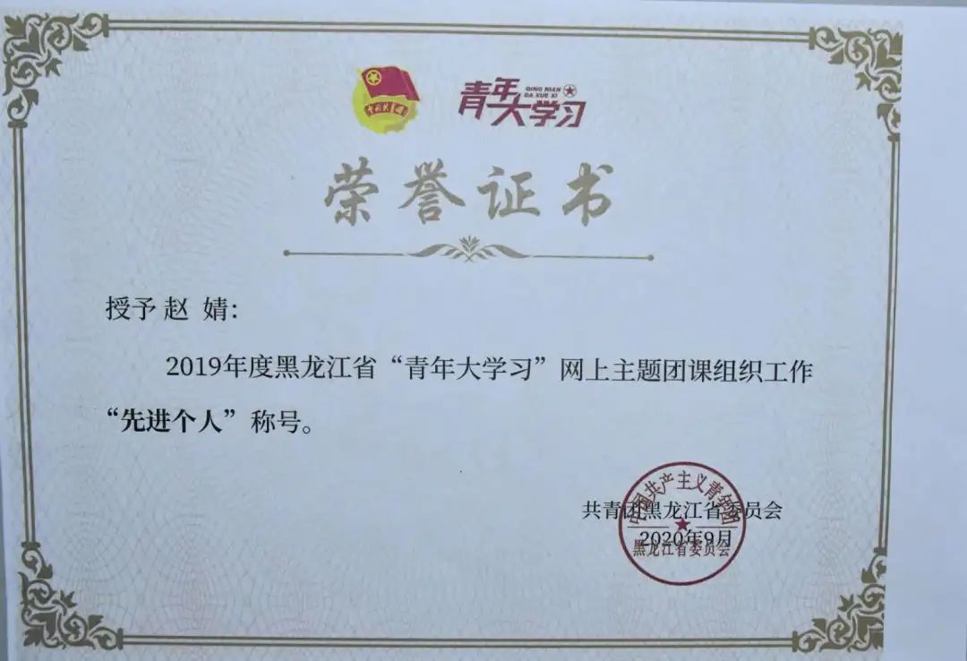 近日,由共青团黑龙江省委员会组织的“2019年度黑龙江省‘青年大学习’网上主题团课组织工作‘先进个人’‘先进集体’评选结果公布。雷竞技官网3个集体获 “先进集体” 荣誉称号,5位教师获“先进个人”荣誉称号。