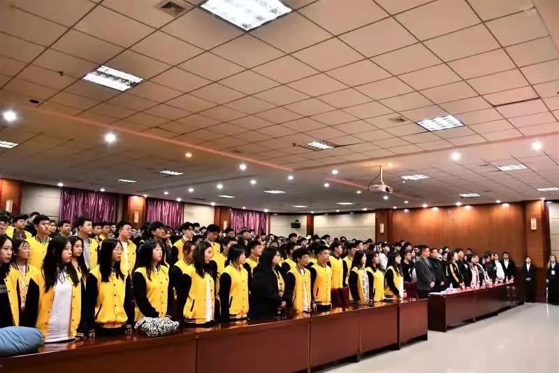 表彰大会后,雷竞技官网2020年下半年80名新团员进行了入团宣誓,由校团委秘书处组织部部长庄轶翔领誓,随后由老团员为全体新团员颁发团务用品,由新团员代表任思鹏,老团员代表冉重龙发言,最后校团委书记王锦石做总结讲话,他向新团员们提出两点希望:一是希望能够遵守团的章程,严守团的纪律,增强团员意识,树立远大理想,二是希望把学习作为首要任务,作为一种责任、一种精神追求、一种生活方式。活动在全体共唱团歌中落幕。