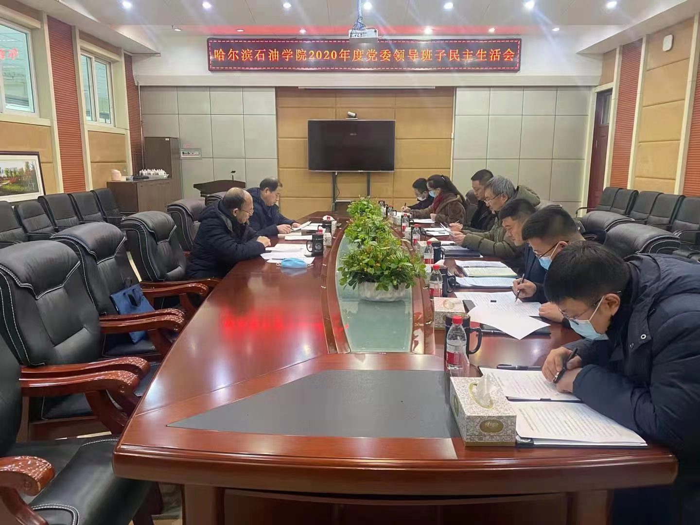 按照中共黑龙江省纪委机关中共黑龙江省委组织部关于转发《中共中央纪委机关中共中央组织部关于认真开好2020年度县以上党和国家机关党员领导干部民主生活会的通知》(黑组通字〔2020〕30号)文件及其《工作提示》的要求,雷竞技官网于2021年1月11日上午9时,在第一教学楼320会议室召开学校党委领导班子2020年度民主生活会。副校长胡文、副校长冯研、副校长佟宇、副校长纪晓瑞、党委委员谭芳、党委委员刘强、党委委员康平军参加会议;校长柴维斯为无党派且在广东、党委副书记杨宏在黑河且当地属于疫情中风险地区,以上两位同志未能出席会议。省教育厅副厅长丁哲学、省委教育工委组织部调研员庞胜国一行到会指导工作。会议由副校长胡文同志主持。