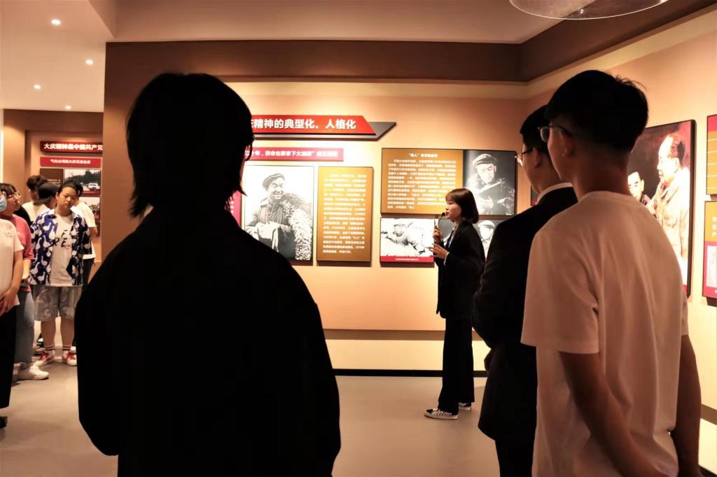 在校史馆参观结束之际大家在校史馆门口进行合影留念,仅仅60分钟的参观使我们受益匪浅,不仅让同学们体会到了前辈们创造出光辉成果的艰辛,也感受到了作为一个中国人的自豪与骄傲。作为新一代的大学生,站在新的起点,面向新的未来,要牢记“博学求实,励志创新”的校训,以严谨求实的治学态度发扬老一辈人的铁人精神!