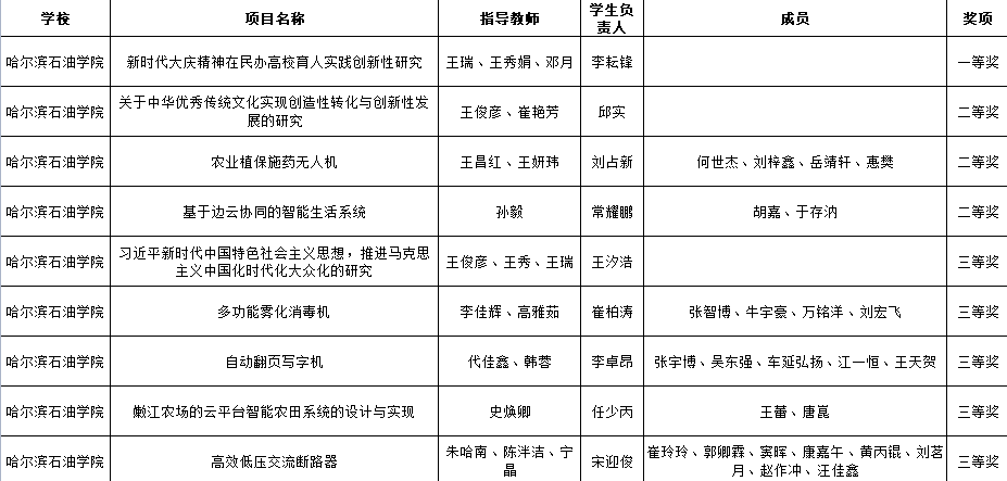 “挑战杯”黑龙江省大学生课外学术科技作品竞赛获奖情况如下。