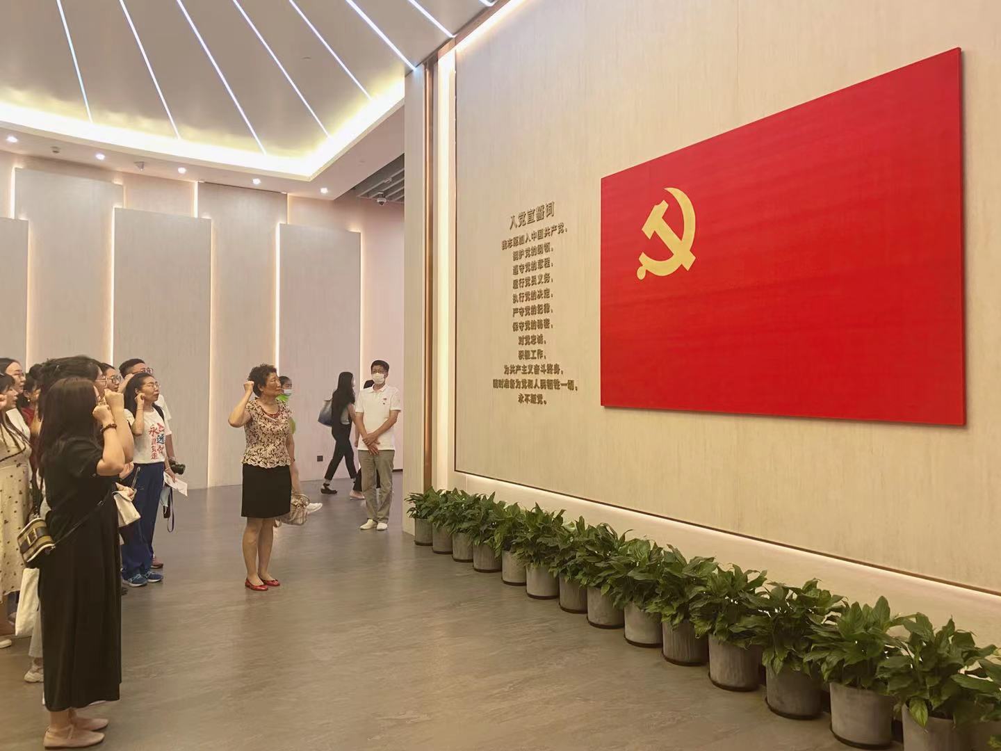 在宣誓厅中,宋玉玲院长领誓,全体教师党员面对党旗,再次庄严宣誓,重温入党誓词。
