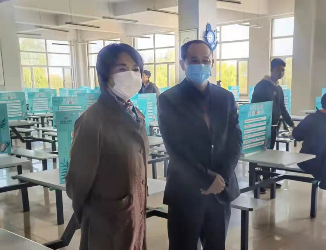 校领导一行首先对食堂消毒、通风、餐桌布置等疫情防控工作落实进行了查看,并详细了解了食堂就餐流程及防护措施等细节。