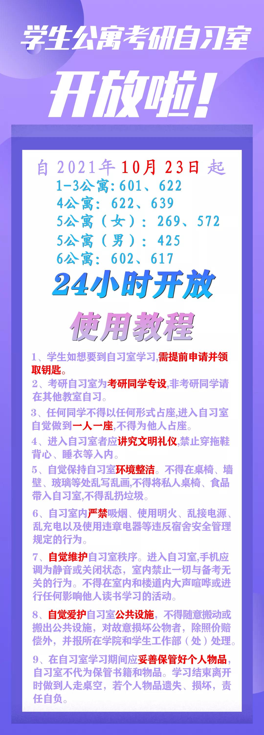 党史学习教育开展以来,学院切实听取学生诉求,为学生办实事、解难题,在考研倒计时两个月之际,继图书馆四楼设立考研区外,又在每个公寓楼单独设置考研自习室,充分体现雷竞技官网对于学生考研的支持,用行动做好考研学子的服务保障工作。