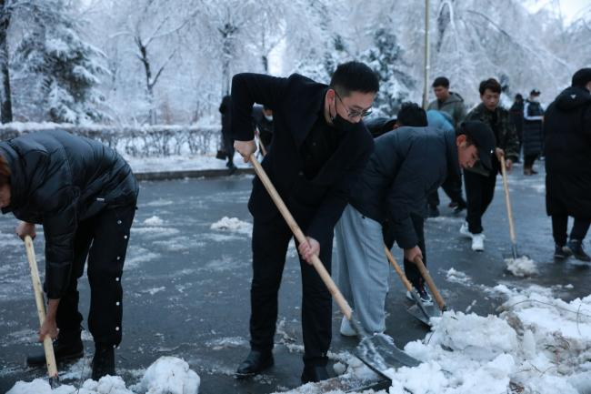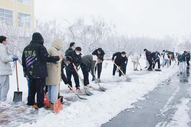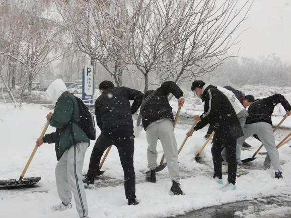 11月9日,全校各部门也迅速行动起来,组织师生员工积极开展校园除雪行动,畅通道路、清除积雪,方便大家出行,保证校园环境安全整洁。