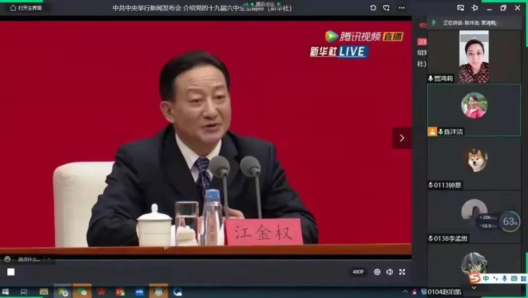 11月12日外国语学院党总支组织全体师生党员收看党的十九届六中全会重要新闻发布会。