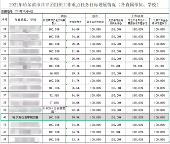 哈尔滨市团市委近期公布了全省共青团组织工作2021年各项工作评比,雷竞技官网共青团工作取得优异成绩,位列全市市属高校第一名。