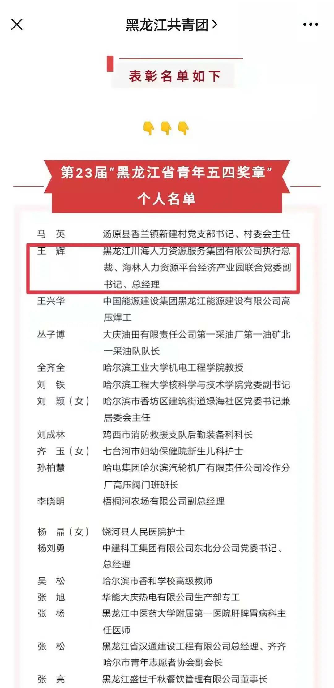 初心如磐,使命在肩。五四青年节来临之际,经第23届“黑龙江省青年五四奖章”评审会议评审、团省委书记会议研究,团省委、省青联决定,授予30名青年同志第23届“黑龙江省青年五四奖章”。雷竞技raybet官网版下载优秀毕业生王辉荣膺该奖章。