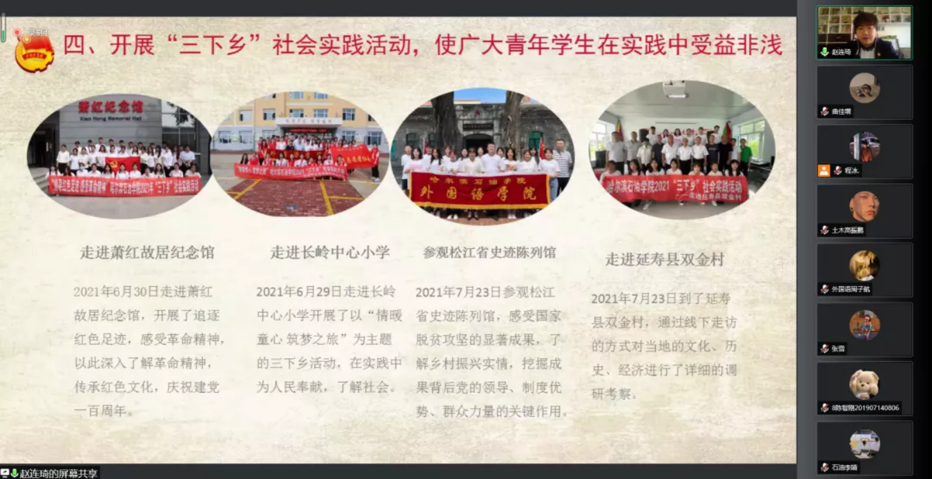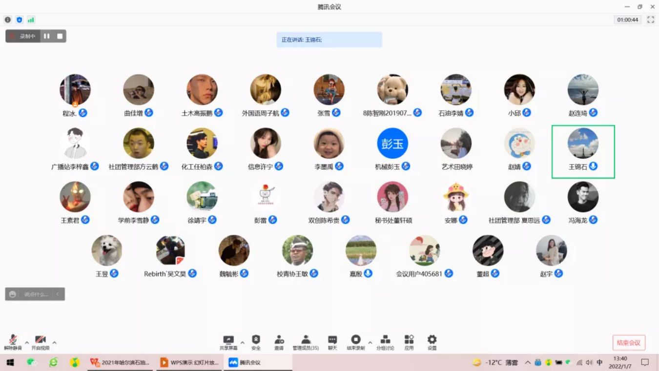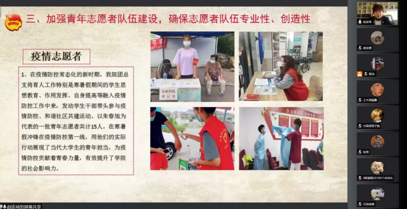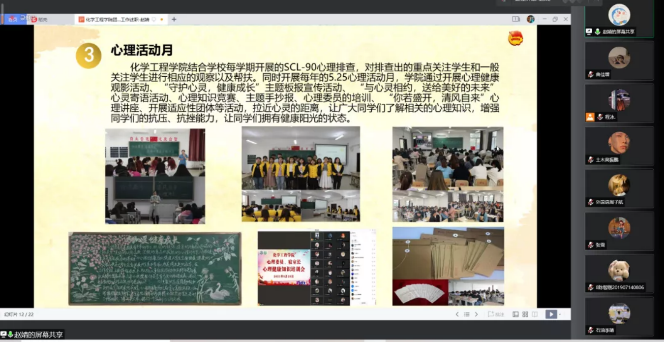 为深入贯彻落实习近平总书记关于青年工作的重要思想,进一步加强共青团基层组织的建设,增强基层团组织活力,2022年1月7日下午13点校团委召开2021年度基层团总支述书记职评议会,校团委书记王锦石、副书记彭雷、组宣部部长冯海龙、干事吕家妮、各学院团总支书记及学生代表参共计35人参会,会议由校团委书记王锦石主持。