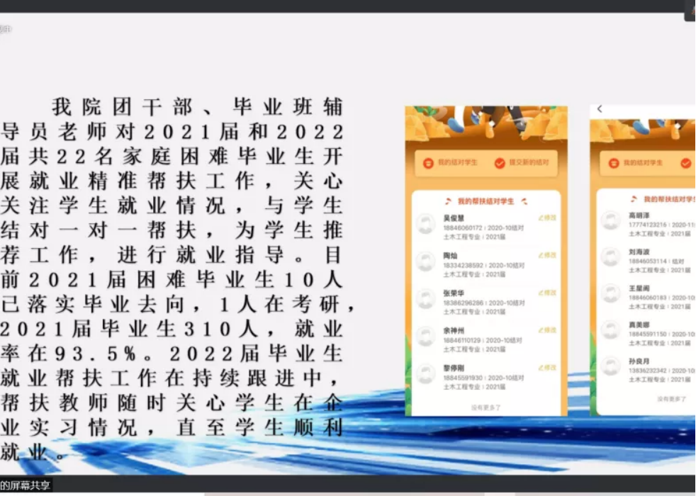 会上,各学院团总支书记围绕2021年学校共青团工作,分别从思想引领、组织建设、日常工作、第二课堂(社团)活动、创新创业、社会实践、志愿服务(公益活动)、学生组织建设、就业指导工作、全媒体建设、获奖情况等多方面进行述职,通过列数据、举实例、谈作为、点问题,总结工作成效、介绍工作品牌、分享工作经验,充分展示了一年来各学院共青团工作取得的显著成效。