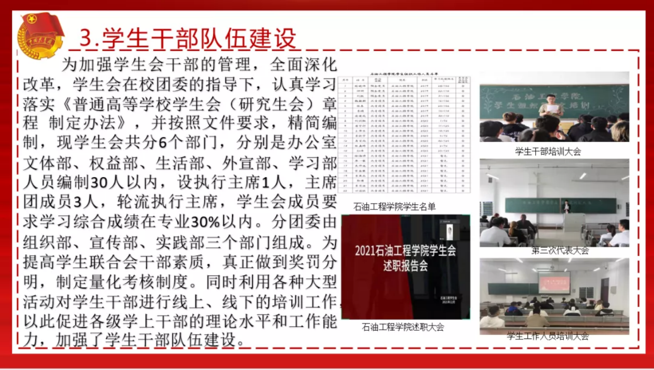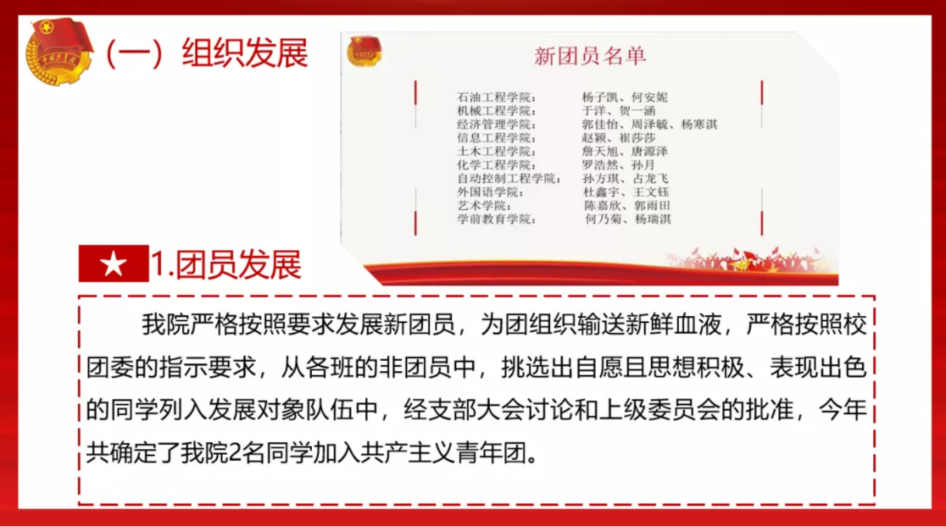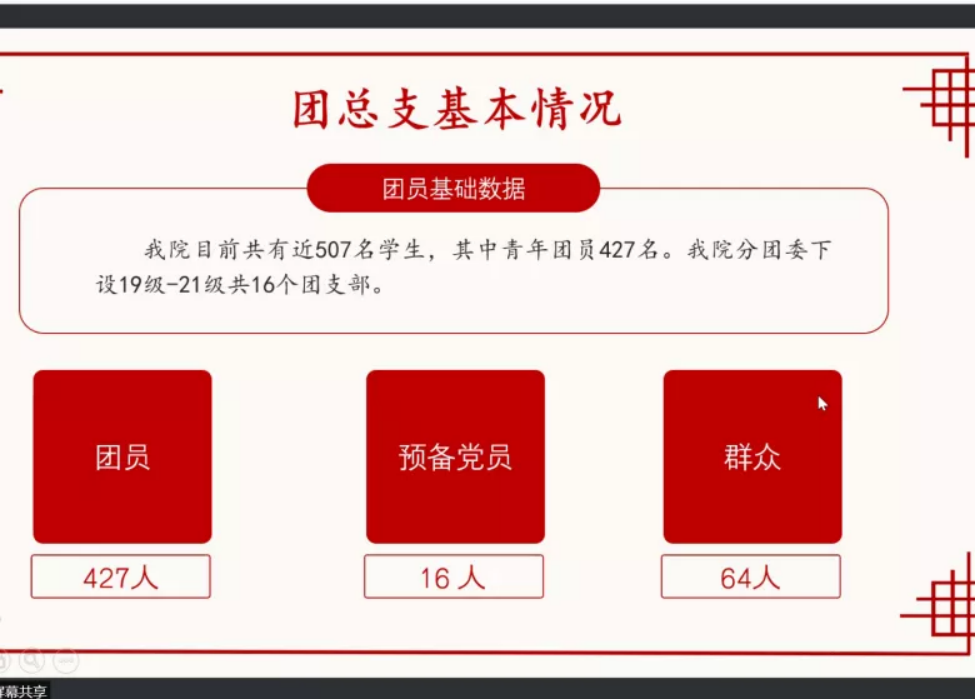 会议上,校团委副书记彭雷对雷竞技官网2021年共青团组织建设方面取得的成绩进行总结,他指出2021年在各学院团总支的共同努力下,雷竞技官网在青年大学习、学社衔接、团支部对标定级、团员发展、青马工程、三会两制一课、主题团日等工作都取得良好的成绩,希望大家再接再厉、再创佳绩。