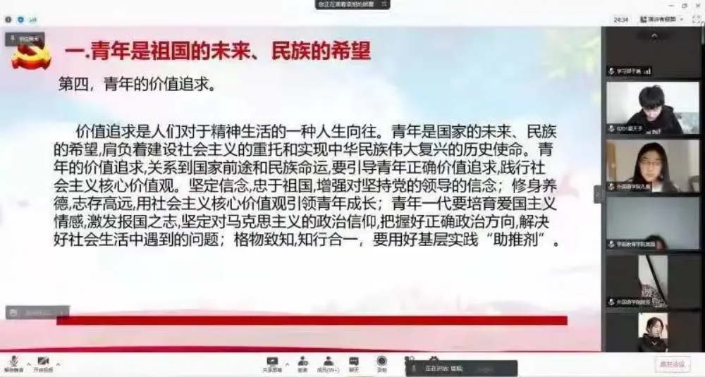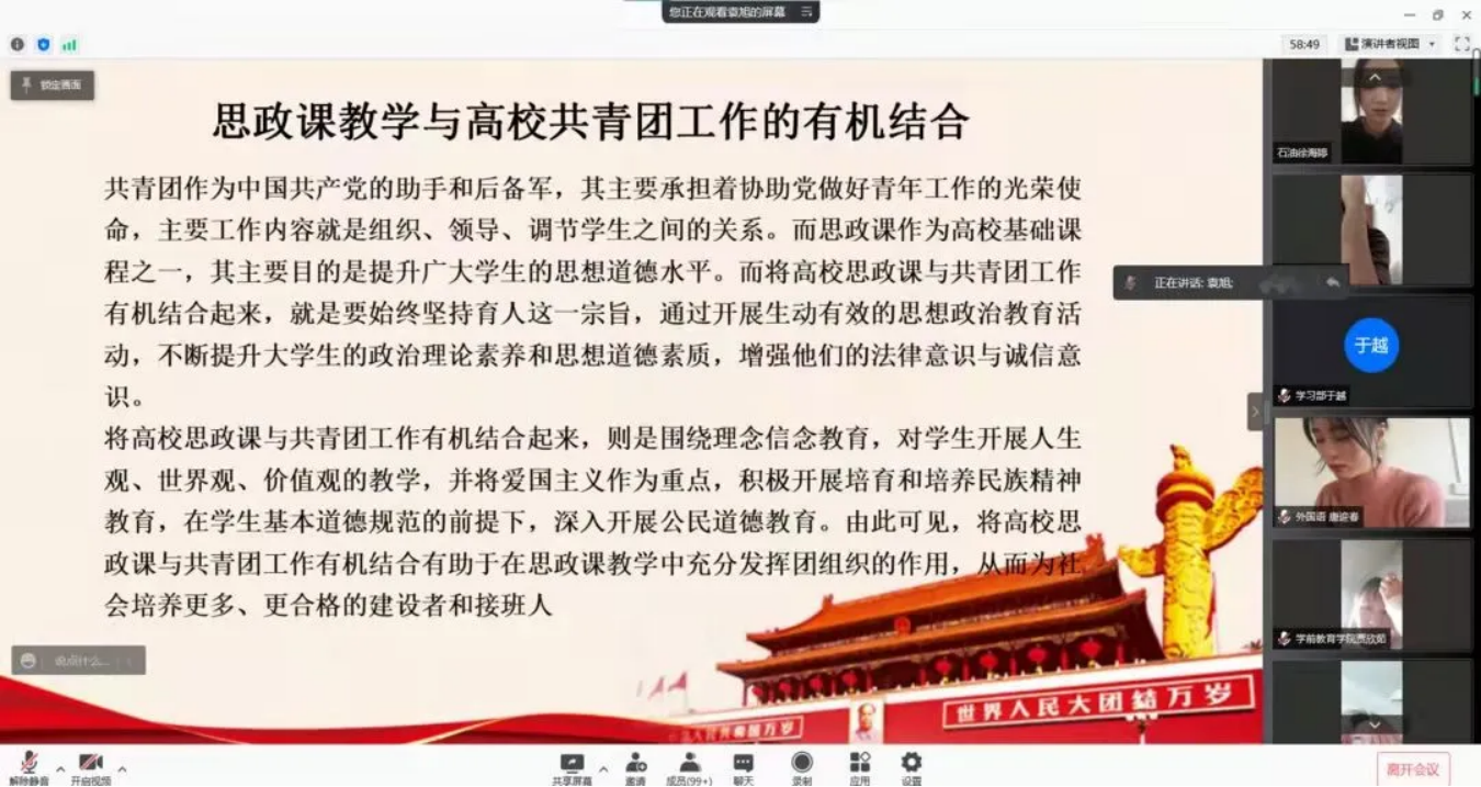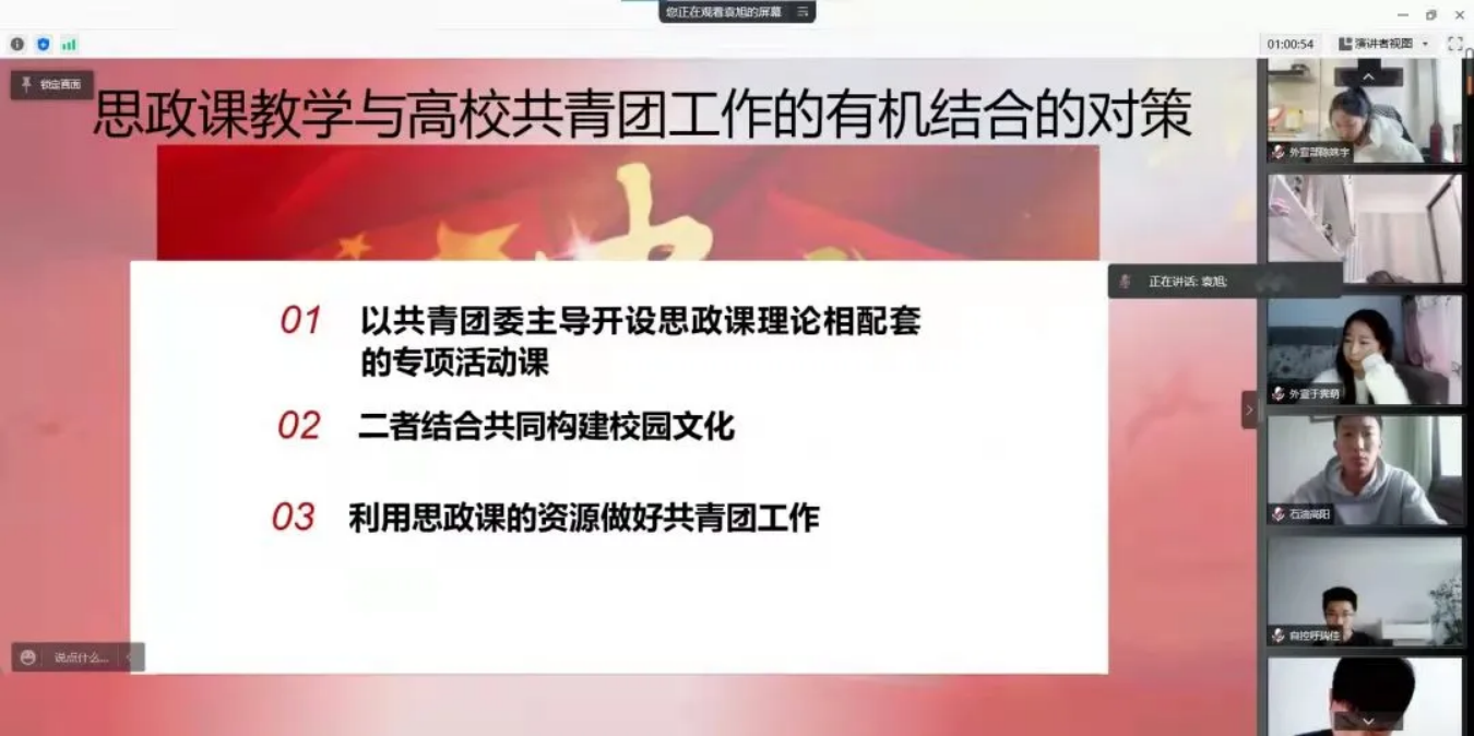 为全面落实全国学联二十七大各项工作部署,加强和改进新时代学生会工作,庆祝共产主义青年团成立一百周年,全面提升学生干部思想理论水平,更好的肩负青年一代的历史使命。雷竞技raybet官网版下载学生会于2022年1月7日-8日,开展了以“做担当民族复兴大任的时代新人”为主题的理论知识学习活动。校、院学生会成员代表358人次参加本次培训,马克思主义学院袁旭老师作为本次培训活动的主讲教师。