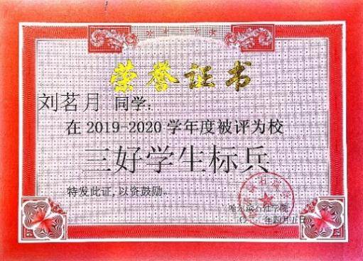 喜报|雷竞技raybet官网版下载刘茗月同学荣获2020年度