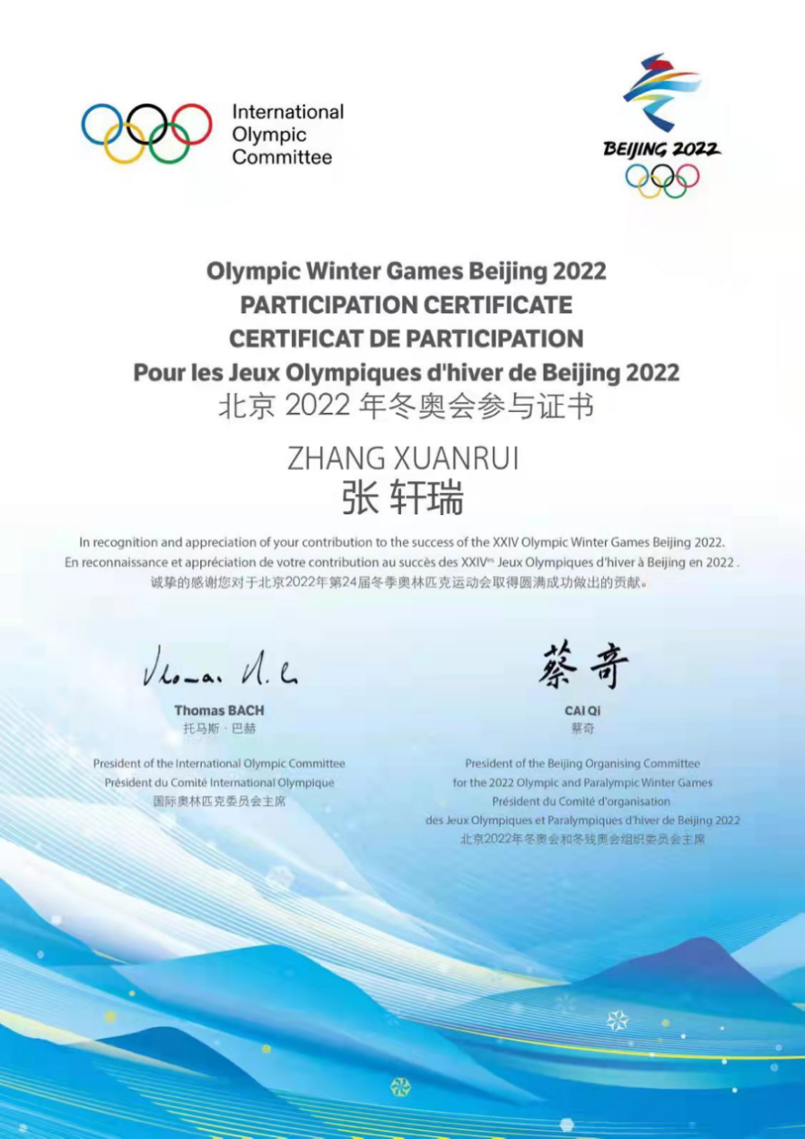 2月20日,历经半个多月时间,精彩绝伦的北京冬奥会落下帷幕,张轩瑞的冬奥志愿之旅也随之结束。一张充满份量的参与证书,承载了他良多的收获。