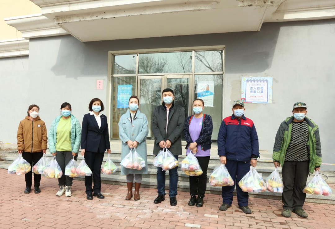 3月10日中午,每一名隔离的同学都非常开心。因为他们每个人都收到了一份“沉甸甸”的礼物。原来是这部分学生进入隔离间之后,学校非常关心同学们的生活和情绪。同时,忙前忙后的物业工作人员也牵挂着这些孩子们。为让这些同学们在隔离期间,避免因隔离产生焦灼烦躁情绪,加强营养,健康饮食,由学校副校长冯研的带领下,学校后勤处处长姜璐、公寓管理科科长金梅等工作人员以及乐晨物业公司经理周曼霞和部分物业员工组成的爱心小分队,来到学校隔离区,为同学们送去了新鲜的时令水果以及牛奶、酸奶等营养品,让同学们感受到了在家的温暖,感受到了学校对他们浓厚而深沉的关爱。