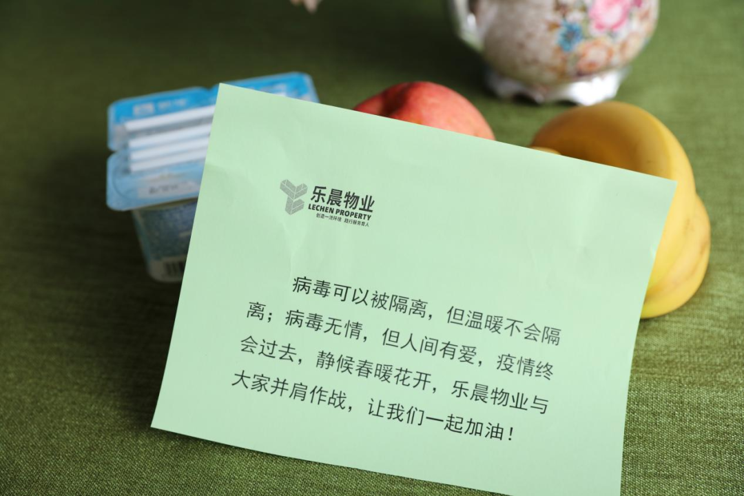 在每一份“爱心礼包”里,同学们还收到了一封“温馨卡片”,这是来自乐晨物业公司送给同学们的小惊喜,是来自全体乐晨物业公司人员对同学们满满的鼓励和祝福。