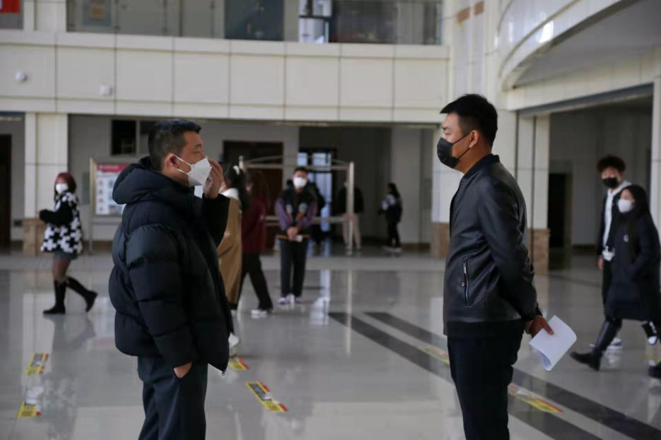 上午9时,各学院学生依次排队前往主楼阳光大厅进行核酸检测。检测现场,校领导及学生工作处、团委、各二级学院党总支书记、副书记、辅导员一同在现场引导学生排队、检测,“戴好口罩、保持距离”这是今日阳光大厅内老师们最常说到的8个字。