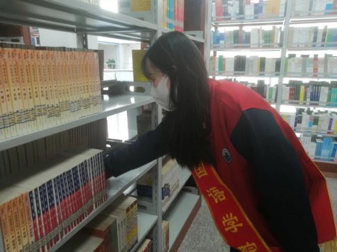与图书馆老师详细沟通了清扫需求及注意事项后,志愿者们明确分工,相互配合。有的同学清扫书架、有的整理书籍,他们穿梭于一排排书架中间,热情饱满的进行着志愿服务工作。经过几个小时的努力,图书馆面貌焕然一新。他们用实际行动践行着“雷锋精神”,为大家营造了一个整洁的学习和阅读环境。