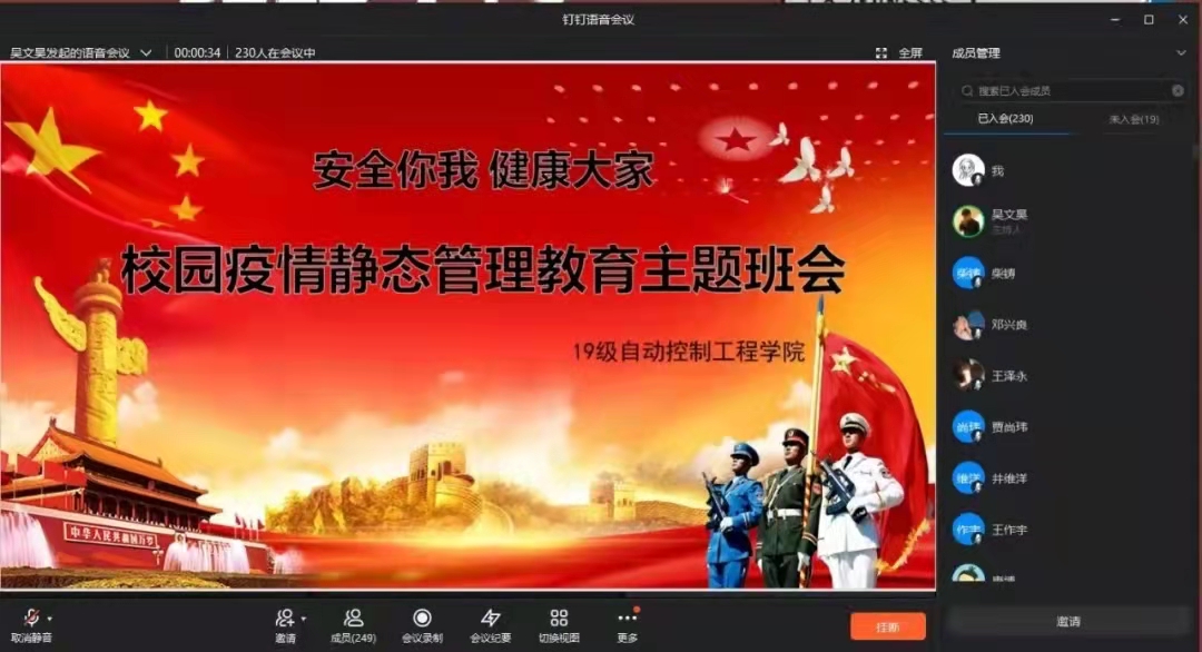 学校封闭管理期间,辅导员每天不定时进行查寝,了解学生实际困难。通过钉钉排查,每天精准掌握校外学生的基础信息和他们身体健康情况,做到“基础信息全摸排、动态信息全掌握”;另外,辅导员充分使用QQ、微信、钉钉等网络化管理方式,加强疫情期间的网络思想政治教育,引导学生树立大局意识、纪律和法律意识,增强自我防护能力,严格遵守各项防控措施,切实把各项工作做实做细。