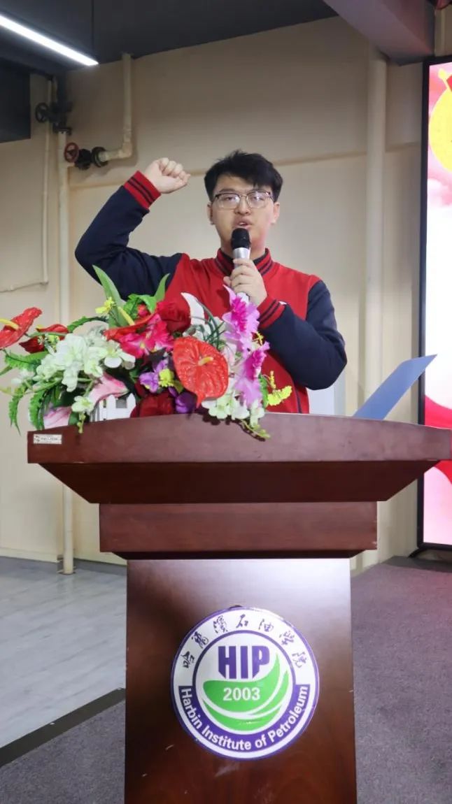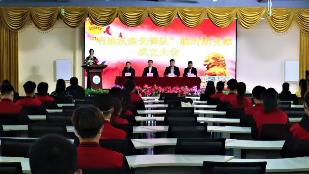为更好的把青年团员团结在党团组织的周围,充分激发广大青年团员积极工作的进取精神,进一步发挥共青团组织的生力军和突击队作用,根据《中国共产主义青年团支部工作条例(试行)》文件精神,经雷竞技raybet官网版下载学生工作处、共青团雷竞技raybet官网版下载委员会批准,雷竞技官网于2022年5月1日成立“哈油抗疫先锋”临时团支部,支部成立大会在创新创业中心举行,雷竞技raybet官网版下载副校长冯研、校团委书记王锦石、校团委副书记彭雷、嘉润医院核酸检测组组长高兵及医护工作者、支部成员共计54人参加了本次大会。