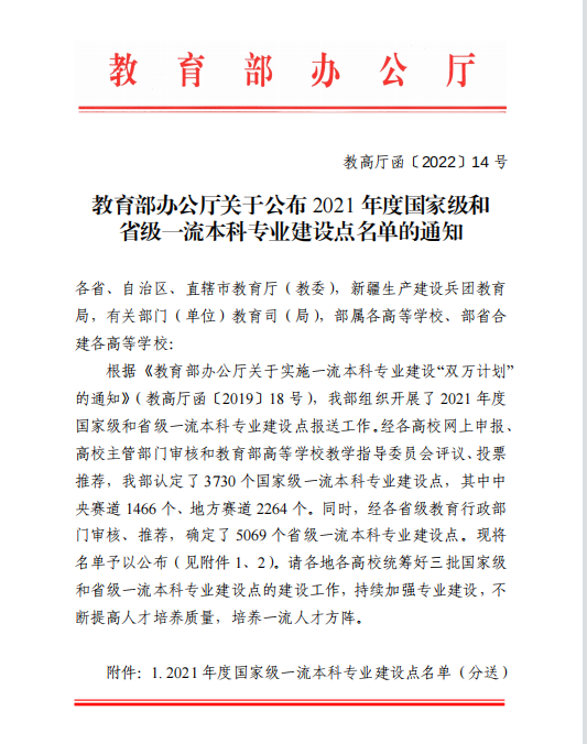 近日,教育部办公厅正式公布2021年度国家级和省级一流本科专业建设点名单,雷竞技官网物联网工程专业(专业代码:080905)经教育部高等学校指导委员会评议并投票推荐,认定为黑龙江省省级一流本科专业建设点。目前,雷竞技官网已有两个专业入选省级一流本科专业建设点。