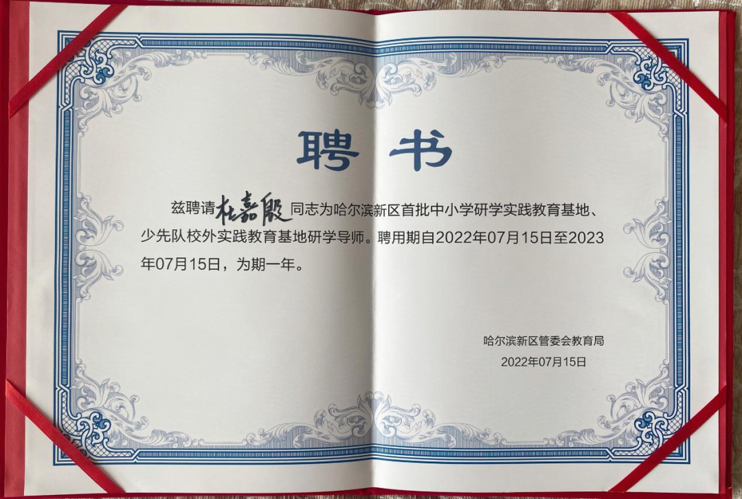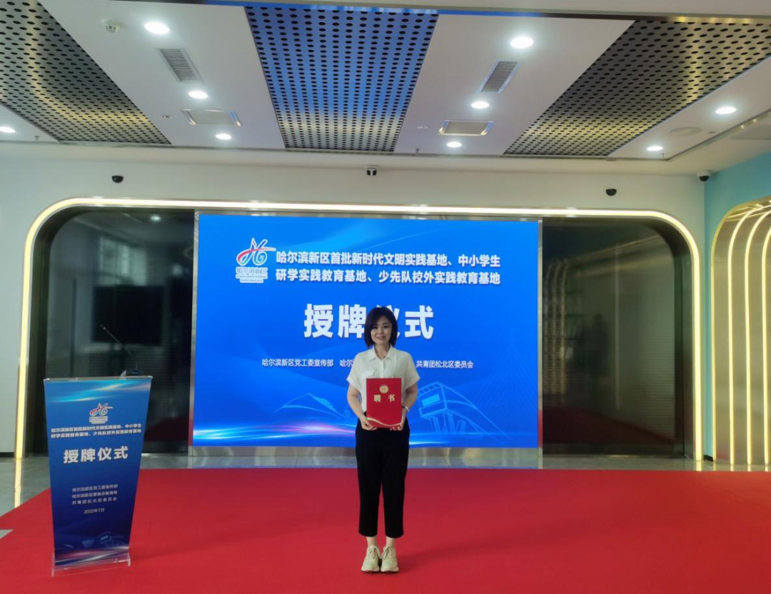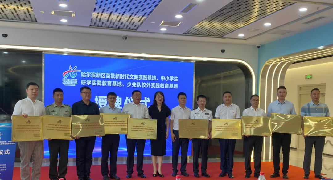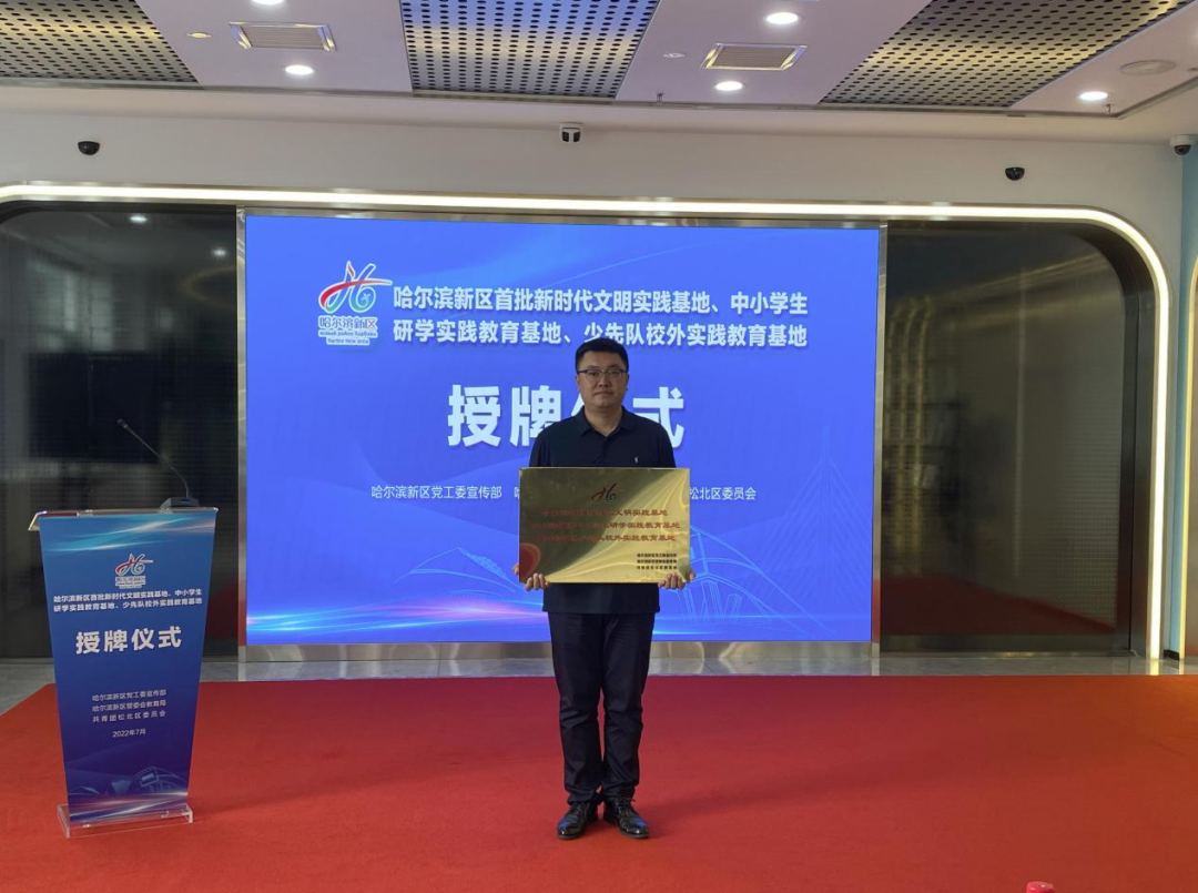2022年7月15日,“哈尔滨新区首批新时代文明实践基地、中小学生研学实践教育基地、少先队校外实践教育基地”授牌仪式在哈新科技创新产业园隆重举行。雷竞技官网铁人精神育人馆在新区众多教育基地中脱颖而出,被授予首批“哈尔滨新区新时代文明实践基地、中小学生研学实践教育基地、少先队校外实践教育基地”荣誉称号。