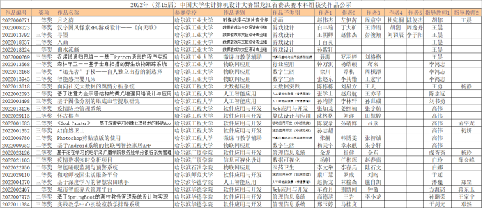黑龙江省赛部分获奖名单