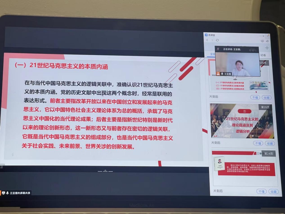 此次“开学第一课”主题教学活动,取得了预期的教学效果,帮助学生深入了解21世纪马克思主义概念提出及语境、理论意蕴及逻辑分析、重大意义,引导学生将理论与实践相结合,学习贯彻落实宣传迎接党的二十大,以实际行动迎接党的二十大的胜利召开!