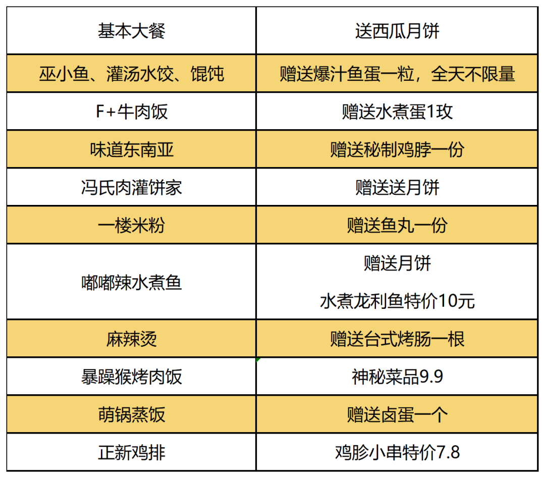 到店用餐每人赠送月饼一块