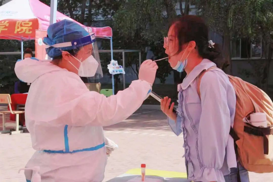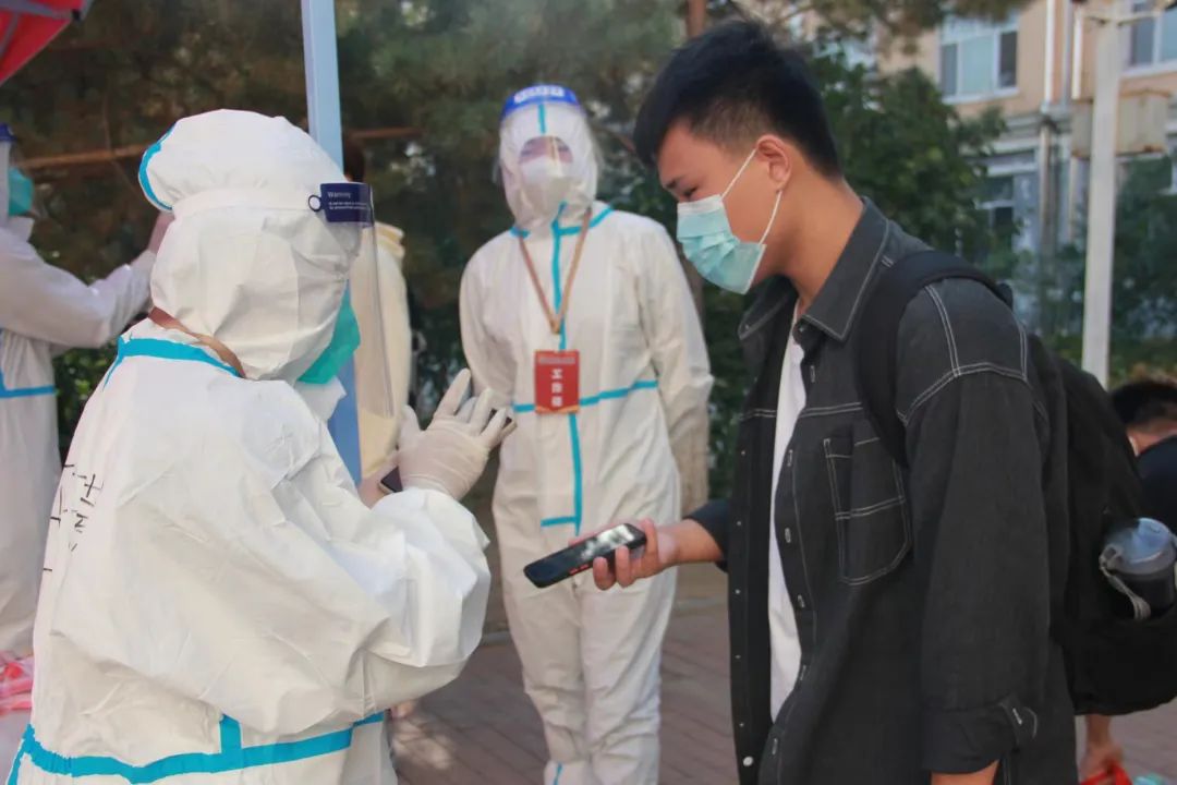 学校将南门设置为新生入校通道,配备体温监测仪,引导新生有序排队。进校前,学校相关工作人员会对行李进行消杀,新生需扫码、测温后,持48小时内核酸检测阴性证明、扫描入校码进入校园。
