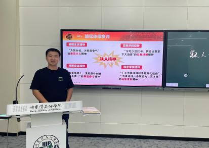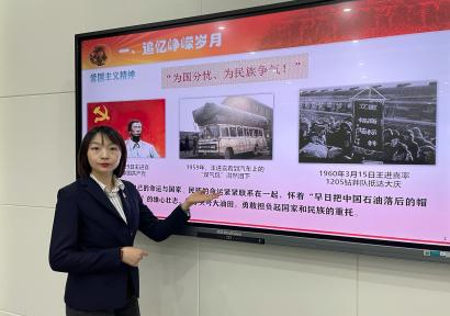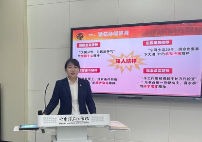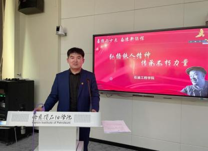 本次授课主要从追忆峥嵘岁月、赓续铁人精神、指引育人道路、扎根行业前行四方面向学生讲述了“铁人精神”的深邃内涵,从三代“铁人”事迹及生活中身边“铁人”的故事,使同学们贴近“铁人”、感受“铁人”,并学习“铁人”精神。