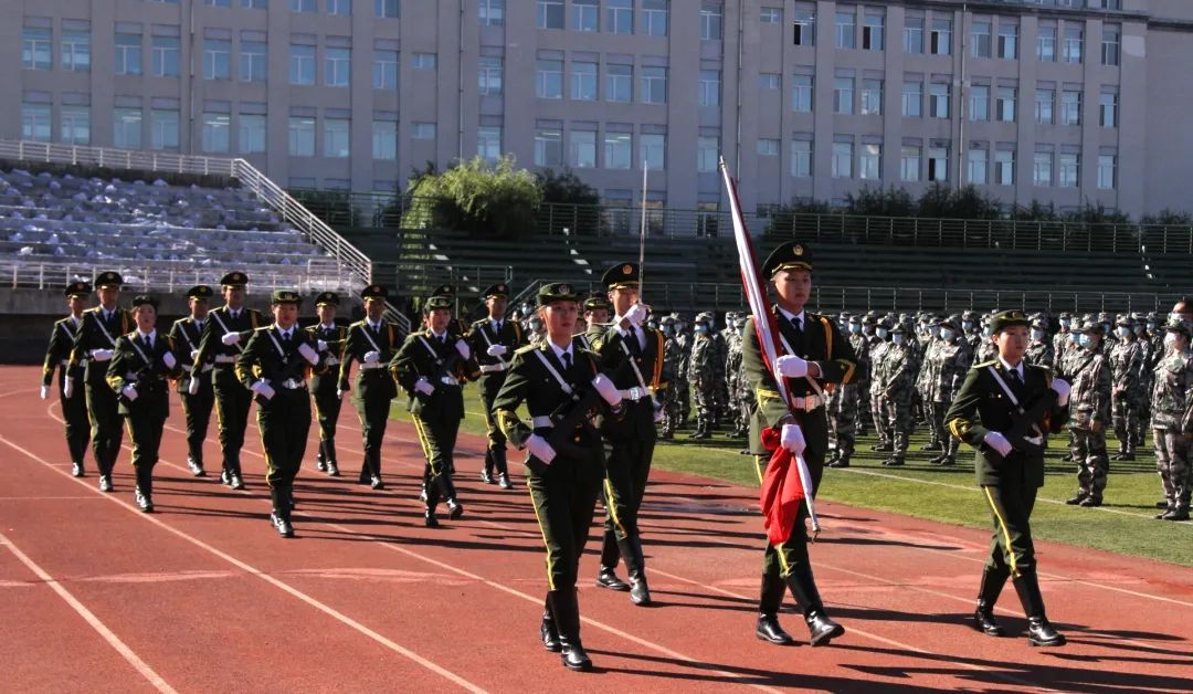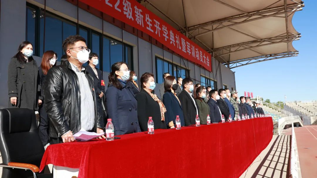 秋风习习,军旗猎猎,绿草茵茵的体育场上,全体2022级新生意气风发、神采飞扬。伴随着激昂雄壮的《义勇军进行曲》,大会就此拉开序幕。