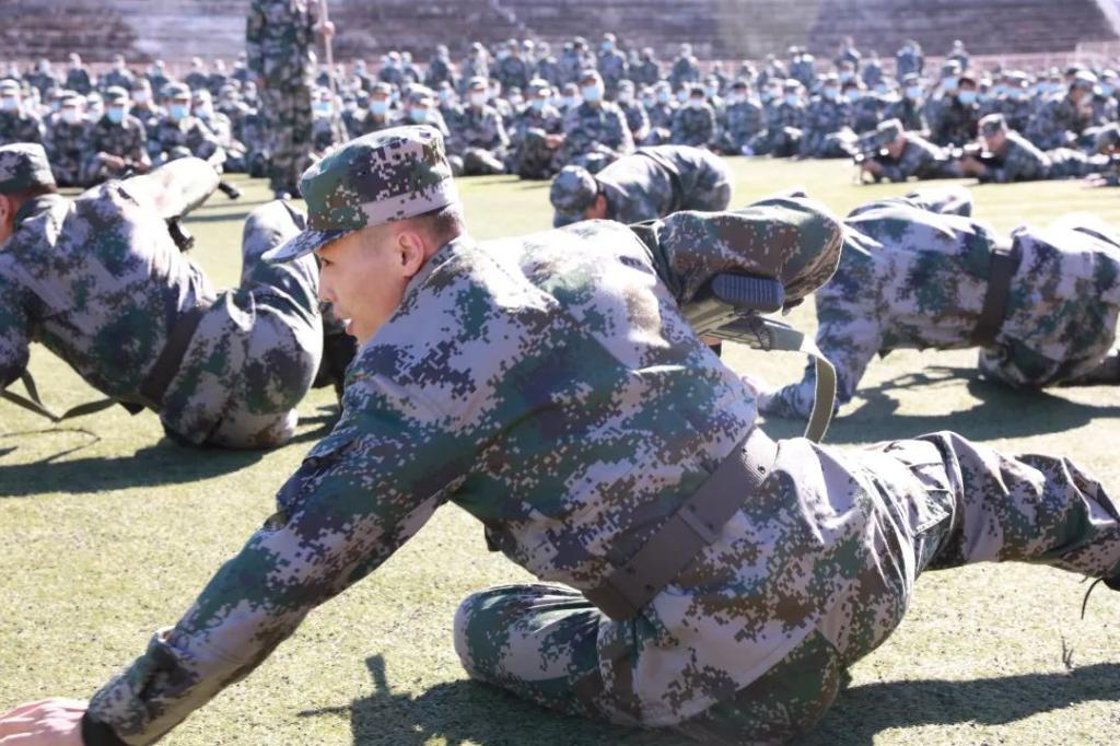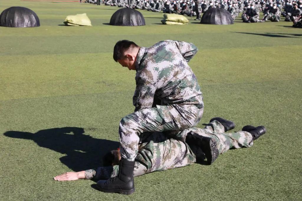 全体军训教官在大会上进行精彩的军训科目示范表演,展现过硬军事技能水平。