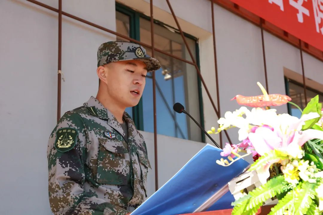 信息工程学院2020级学生教官庞凯泽作为教官代表发言。他代表全体学生教官郑重承诺,在军训中将竭尽所能,逐个击破、解决问题,以良好的军人形象,过硬的军事素质,全力完成此次军训任务,使同学们在军训中,提高自身价值,提升思想觉悟,增强集体主义观念。