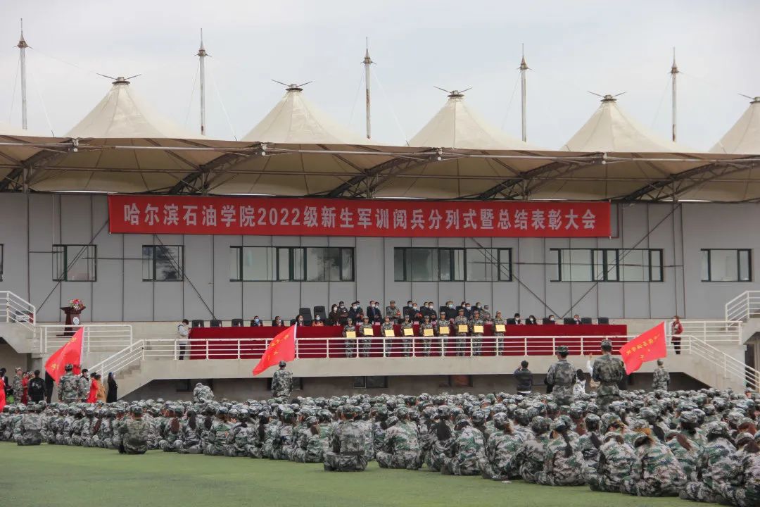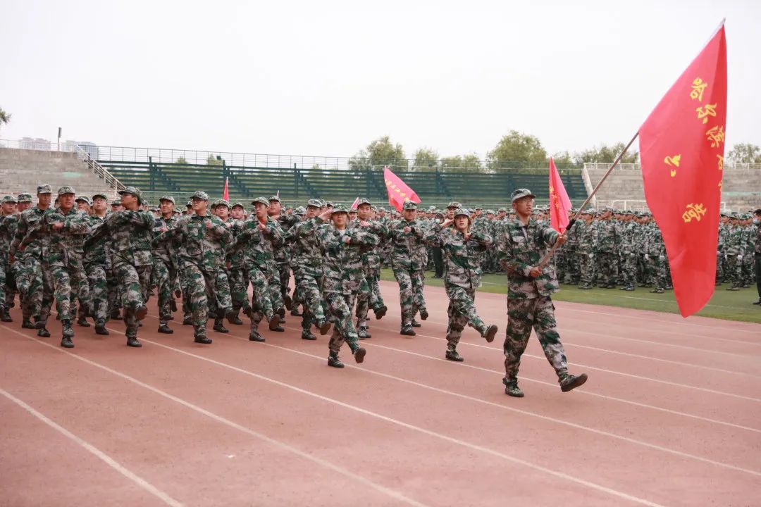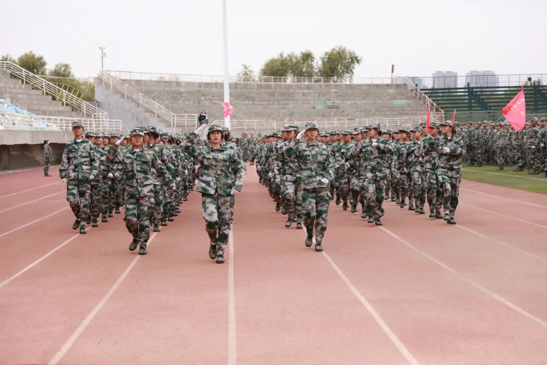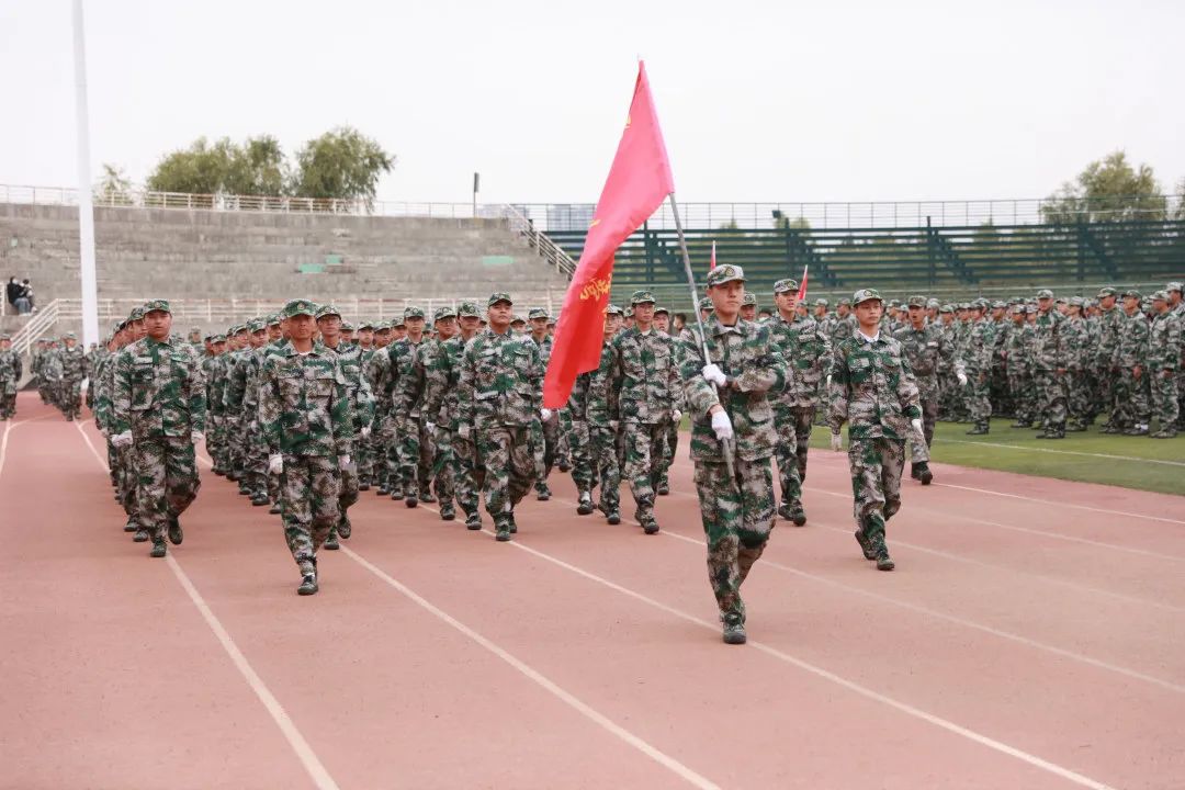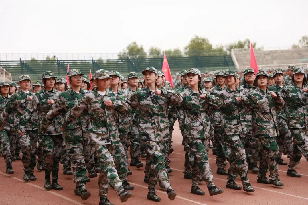 会上,2500余名参训新生以昂扬的斗志、崭新的风貌,向校领导及全校师生汇报军训成果。在军乐声中队列整齐、步伐统一、口号嘹亮、士气高昂,依次经过主席台进行检阅。