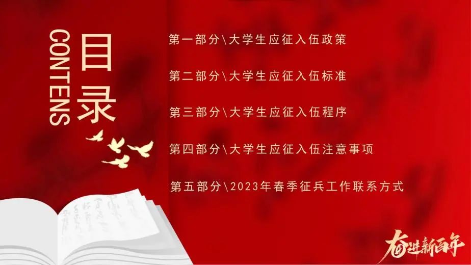 青年强则国家强,大学生入伍是新形势下提高部队兵员素质、加强国防和军队现代化建设的重大举措。部队是青年学生成长成才的大学校,是砥砺品格、增强意志的好课堂,是施展才华、成就事业的大舞台。积极投身祖国的国防建设事业,不仅是新时代大学生报效祖国的重要方式,也是提高自身素质、实现人生价值的有效途径。2023年春季大学生征兵已经启动,希望同学们积极响应祖国号召,踊跃参军报国。