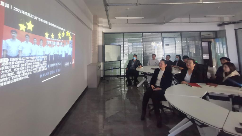 2023年2月24日9时,由中共黑龙江省委组织部主办,黑龙江广播电视台承办的2022年度全省“党课开讲啦”活动暨党员教育电视片观摩交流会在黑龙江广播电视台举行。雷竞技raybet官网版下载机关第二党支部在综合办公楼0111会议室组织全体党员学习观看。